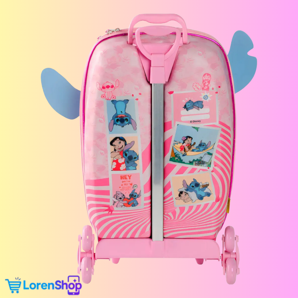 Mochila con Carro Stitch 3D con Orejas Móviles + Lancheira 3D de REGALO – Triple Rueda, Impermeable y Súper Completa